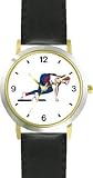 More Detail For Women Runner or Sprinter in Starting Block Track Field WATCHBUDDY DELUXE TWO TONE THEME WATCH Arabic Numbers Black Leather Strap Children s Size Small Boy s Size Girl s Size